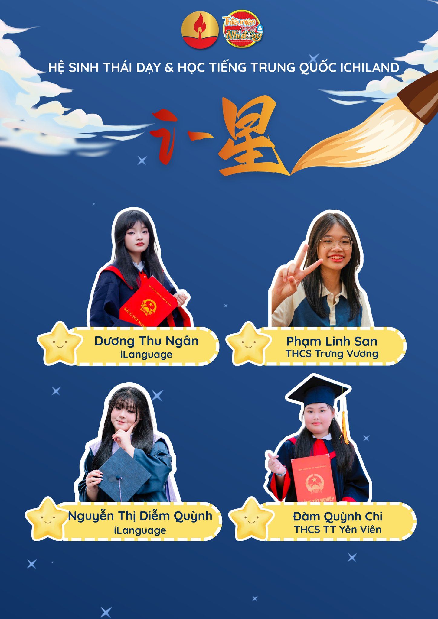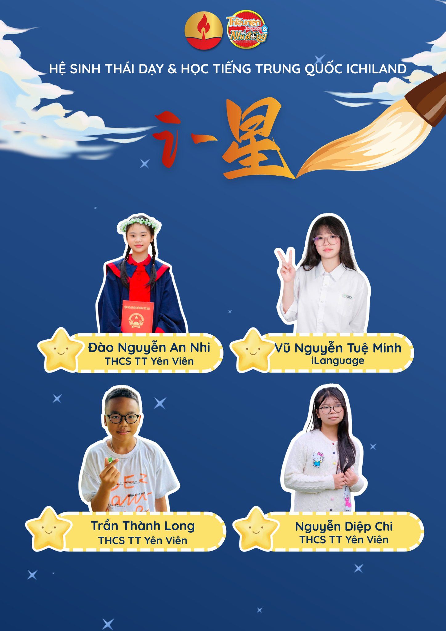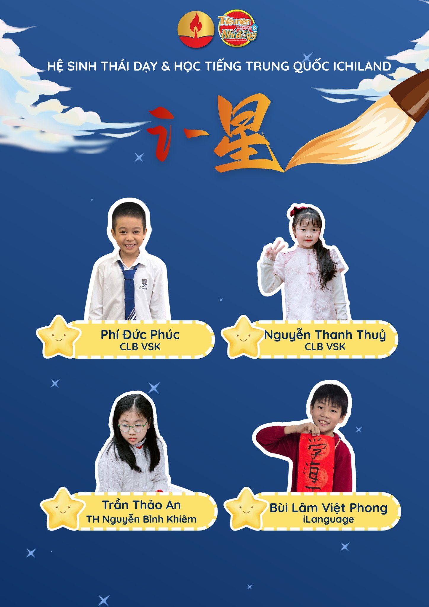 Chung kết đang chờ phía trước – nơi các con sẽ bước lên sân khấu, thể hiện bản lĩnh, kiến thức và tài năng của mình một cách trọn vẹn nhất! Ai sẽ là Ngôi sao toả sáng nhất đây? Theo dõi fanpage iChiLand để cập nhật những thông tin mới nhất về Vòng Chung kết Cuộc thi i-星 Ngôi sao tiếng Trung nhé!