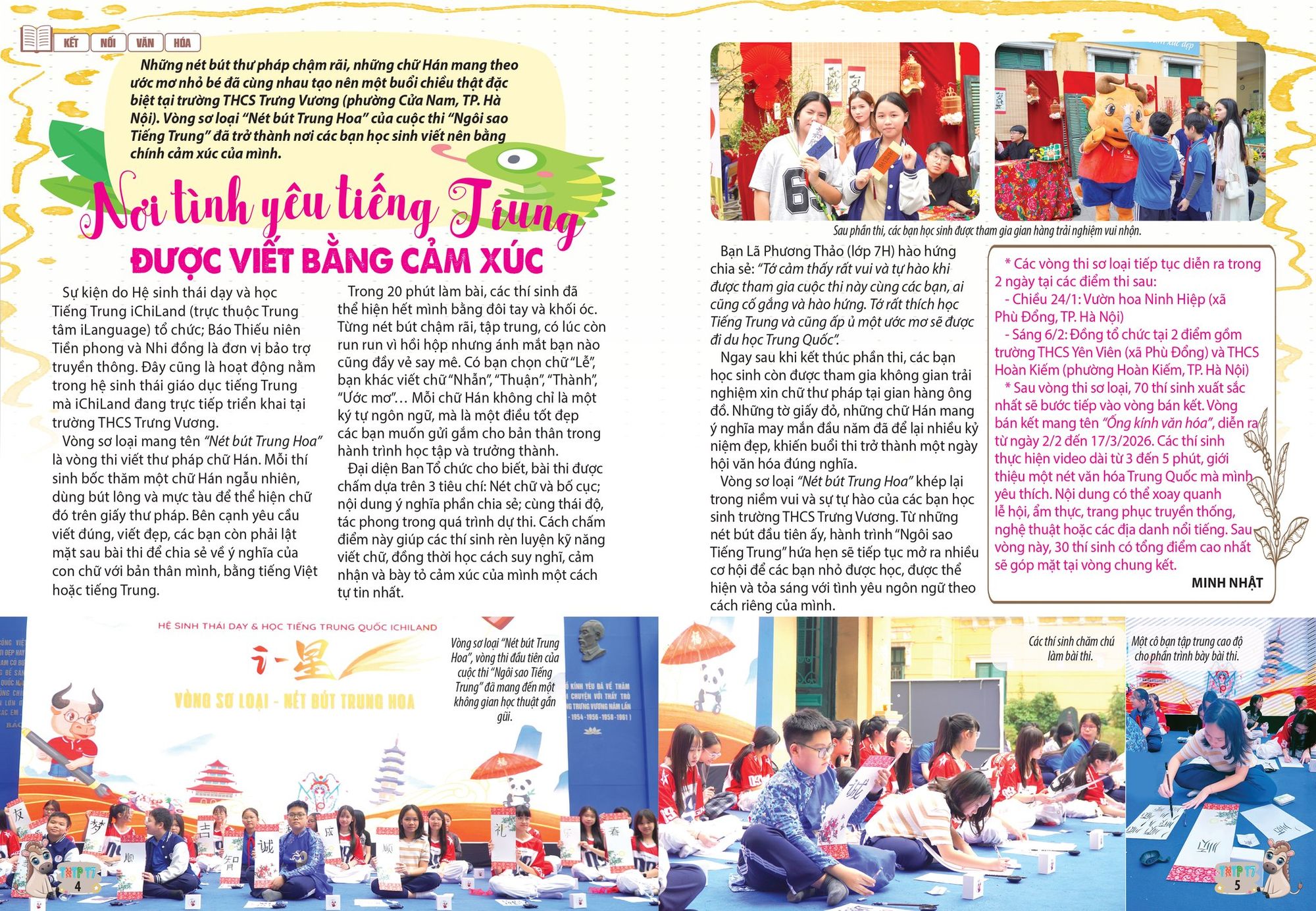 Là nụ cười rạng rỡ của bạn Lã Phương Thảo (Lớp 7H) khi nói về ước mơ du học Trung Quốc.Hóa ra, tiếng Trung không hề khô khan. Ở "Nét bút Trung Hoa", ngôn ngữ đã trở thành cầu nối để chúng mình hiểu nhau hơn, cùng kết nối, cùng yêu văn hóa và trân trọng những giá trị truyền thống. Cảm ơn báo Thiếu niên Tiền phong và Nhi đồng đã gọi tên cảm xúc ấy là "Nơi tình yêu tiếng Trung được viết bằng cảm xúc".
